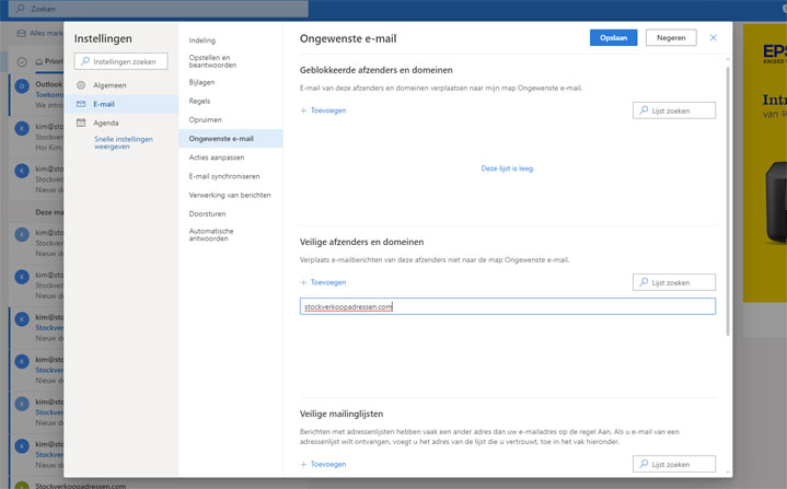 Door ons te whitelisten zet je ons bij je emailprovider in een lijst van veilige afzenders.