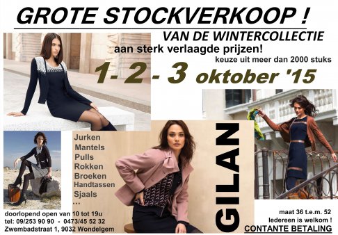 Wondelgem1 oktober 2015 --- 3 oktober 2015Grote stockverkoop van merkkledij dames