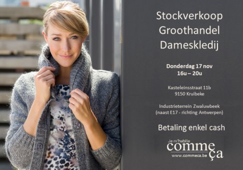 Kortrijk12 november 2016 --- 19 november 2016Stockverkoop van vorige collecties merkkledij met kortingen tot -60%!