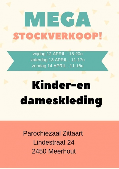 Mechelen1 april 2019 --- 30 april 2019Alles moet weg ! Ronde prijzen vanaf € 10 . Jongens en meisjeskleding van 2j tot 16j .