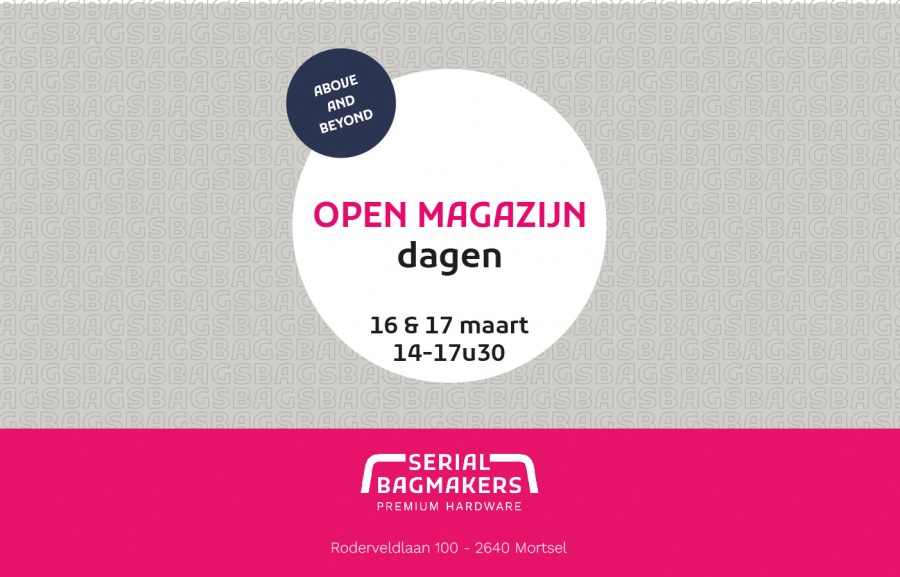 Mortsel16 maart 2024 --- 17 maart 2024Open Magazijn bij Serial Bagmakers. We verkopen laatste stuks aan ronde prijzen.