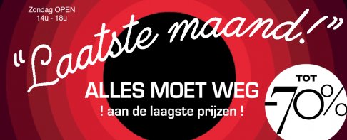 Maasmechelen1 december 2018 --- 31 januari 2019Na meer dan 60 jaar TOTALE UITVERKOOP wegens stopzetting met KORTINGEN tot -60%.