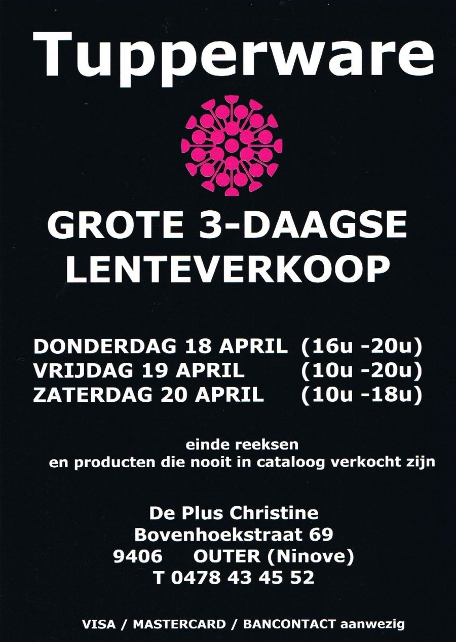 Kom gedurende de 3 daagse LENTEVERKOOP profiteren van uitzonderlijke koopjes van TUPPERWARE!!!