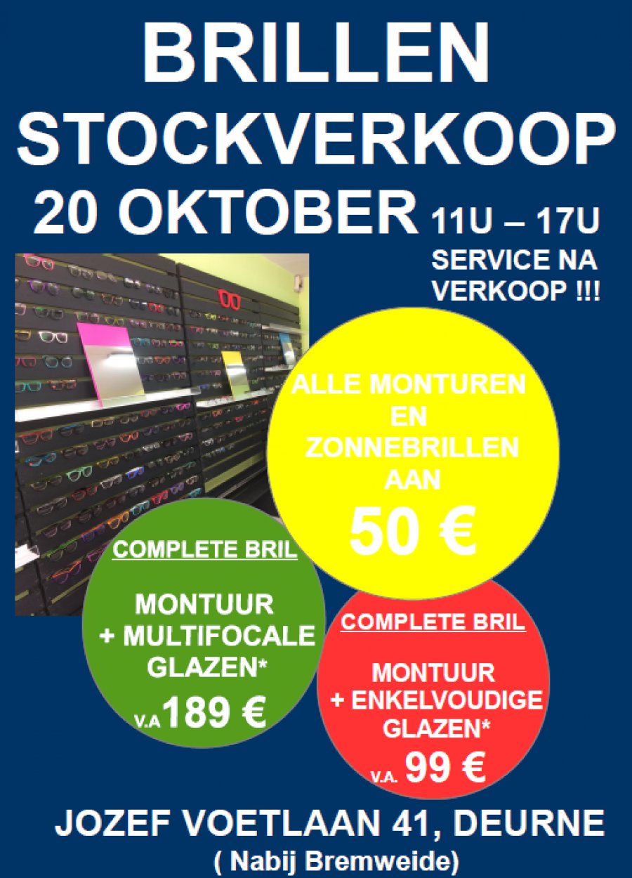 Alle monturen en zonnebrillen aan 50 €/stuk.