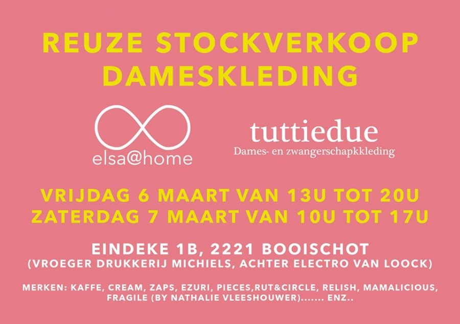 Stockverkoop georganiseerd door Elsa&Home en tuttiedue. Je vindt hier kleding voor dames en ook zwangerschapskleding.