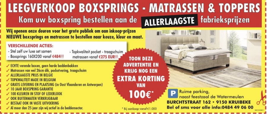 LEEGVERKOOP BOXSPRINGS - MATRASSEN & TOPPERS
