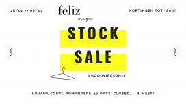 Stocksale bij Feliz Conceptstore. Feliz Conceptstore is naar eigen zeggen een "Feel good store met leuke mix van kleding, accessoires, schoenen, kadootjes en zoveel meer! Een inspirerende plek vol toffe ideeën"