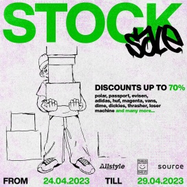 Stocksale georganiseerd door Source Skateshop in Mechelen. Je shopt hier tshirts (vanaf €15), sweaters (vanaf €30), schoenen (vanaf €15), caps en beanies (vanaf €10). Kortingen tot -70% Je vindt hier merken zoals Polar Skate Co., Adidas Skateboarding, Thrasher, Dickies, HUF, Volcom, Vans en veel meer.