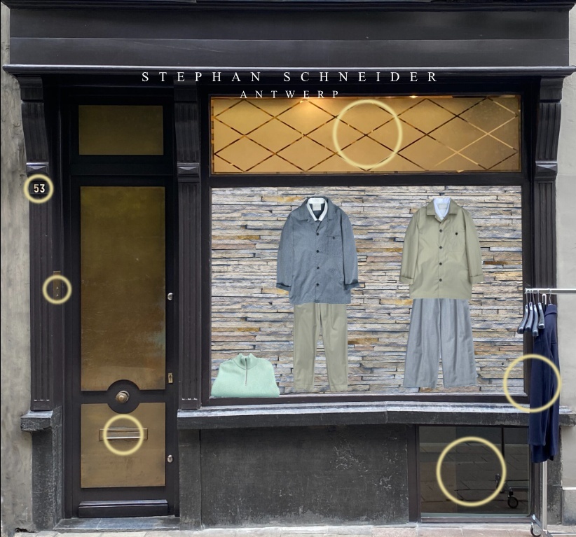 Stockverkoop van modeontwerper Stephan Schneider. Kleding, accessoires en stoffen voor mannen en vrouwen.