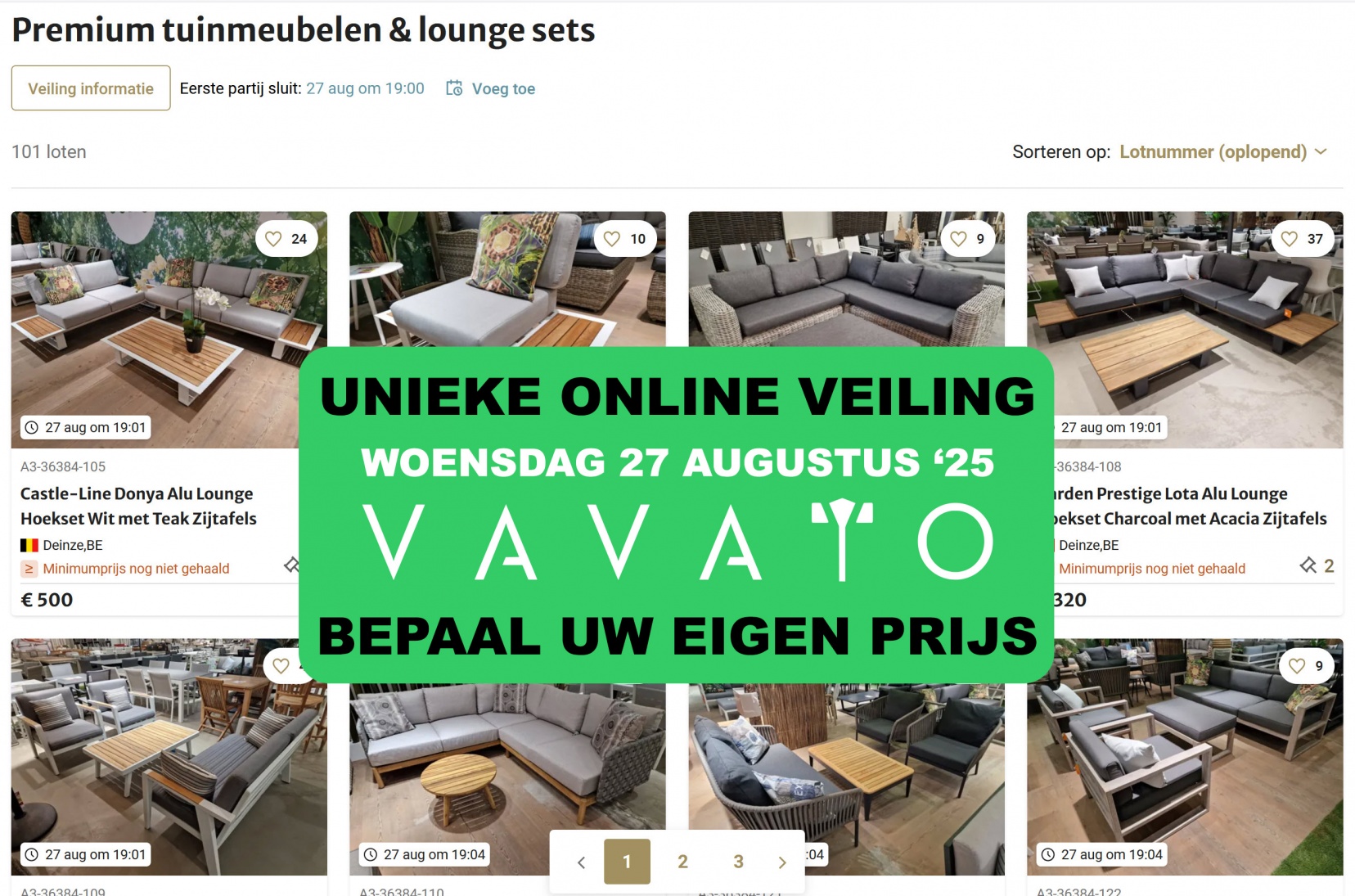 Unieke online veilingverkoop van PREMIUM TUINMEUBELEN, TUIN- & LOUNGE MEUBELEN, BADKAMERS!