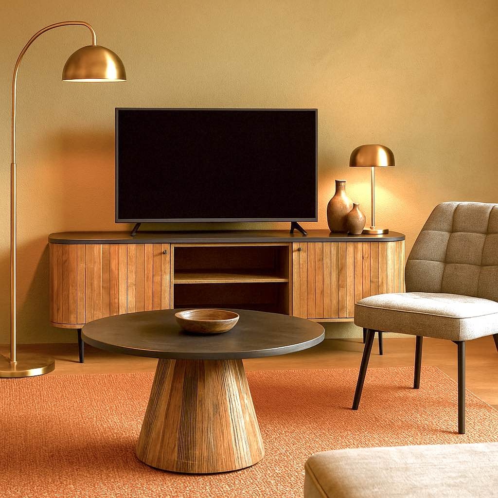 Grote stockpartij Indoor Massieve meubelen aan uitzonderlijke kortingen rechtstreeks van de fabrikant. 600 Teak tafels, stoelen, 450 tv meubels, 200 buffetkasten, 650 dressoir, 830 salontafels, 1500 stoelen, kleinmeubel,etc... Stockverkoop op 1600 m2 rechtstreeks in de hangar van de fabrikant.