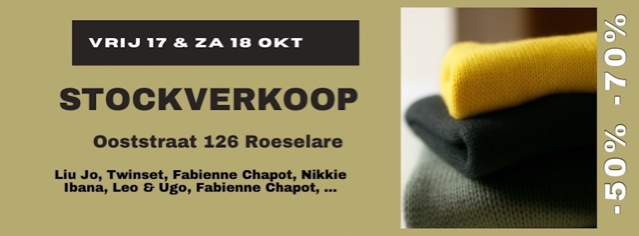 Onze grote Stockverkoop komt eraan en die wil je niet missen! Scoor kortingen van -50% & -70% op topmerken dames kledij!