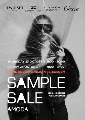Sample Sale SS16 @ Amoda Karel Oomsstraat 47 A, 2018 Antwerpen Thursday 26th of May 10h - 18h Twin-Set, Guess, Marciano, Ambre Babzoe, List, ... WOMAN ONLY Please bring your invitation with you. Cash only.