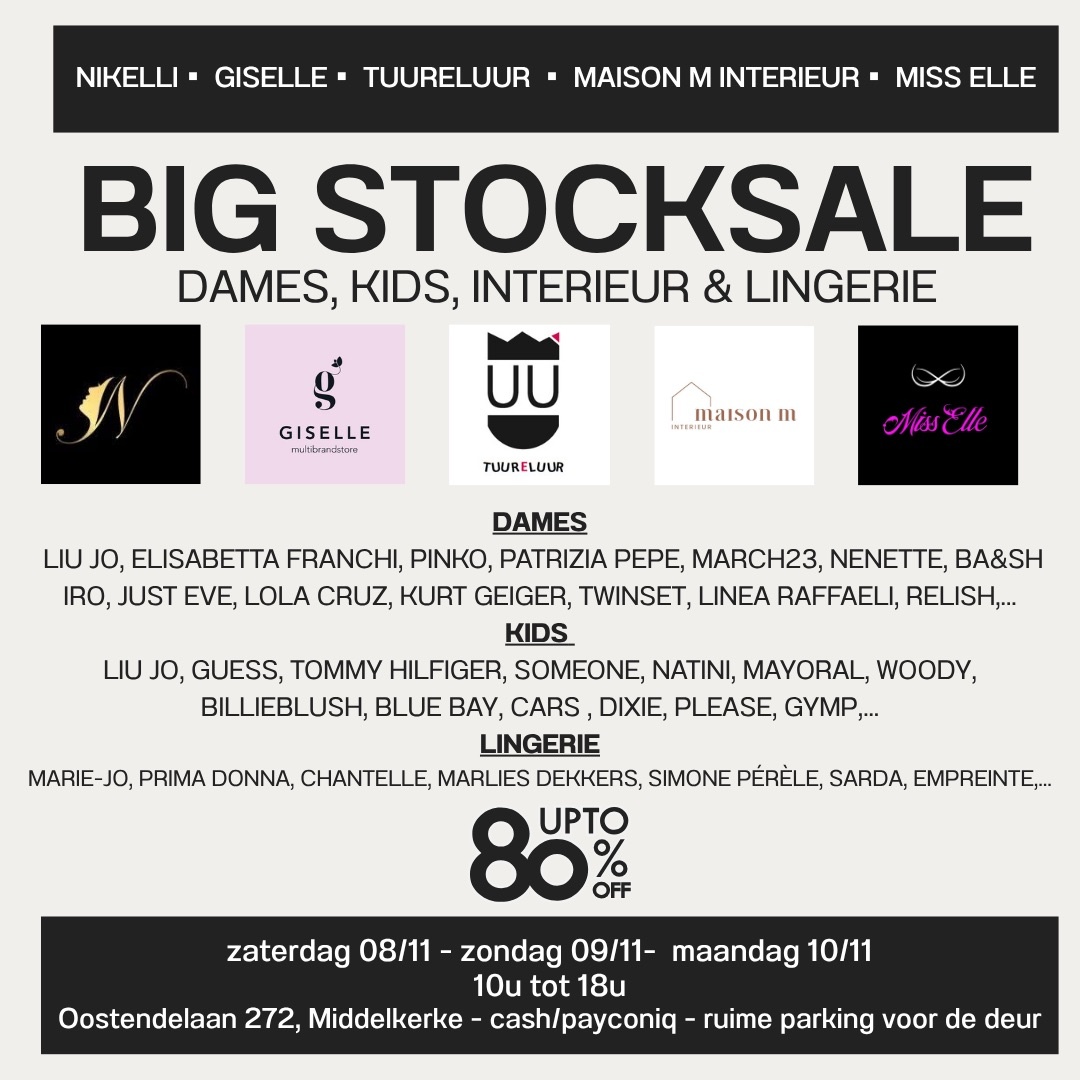 Stockverkoop georganiseerd door de winkels Nikelli, Giselle, Tuureluur, Maison M Interieur en Miss Elle. Je vindt hier kleding voor dames, kids en ook lingirie.