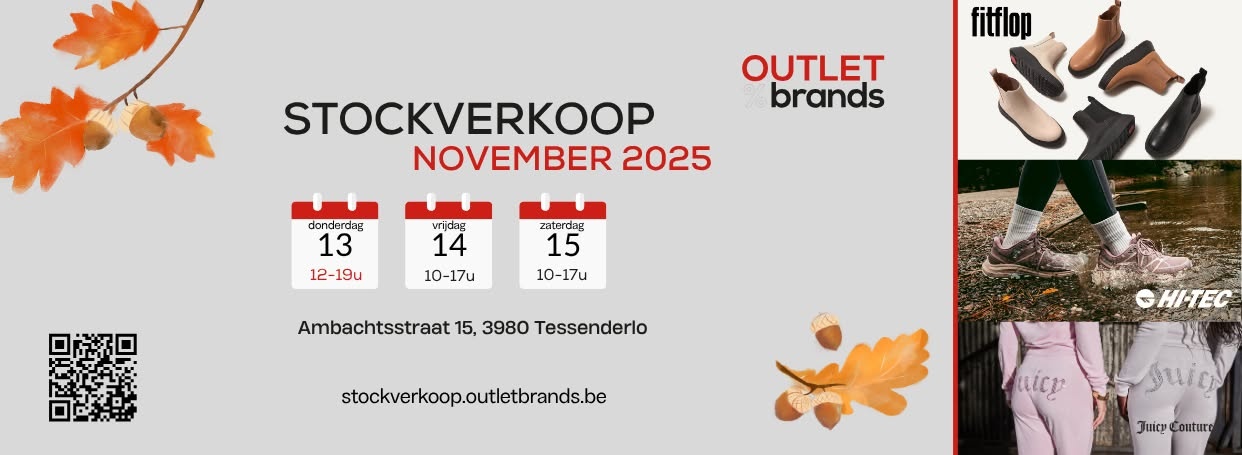 Stockverkoop georganiseerd door Outlet Brands van oa. FitFlop, Buffalo, Dune, Odlo, Santini en meer