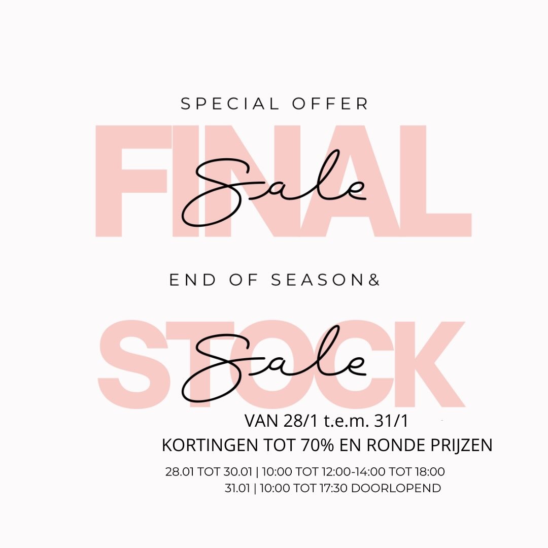 De stockverkoop is te vinden rechtover kamiel&kaat en naast podologisch centrum.