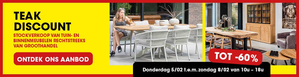 Meer info op https://teakdiscount.be/nl/hoeilaart/indoor/ of U kan ons volgen op Facebook via "Teak discount ".