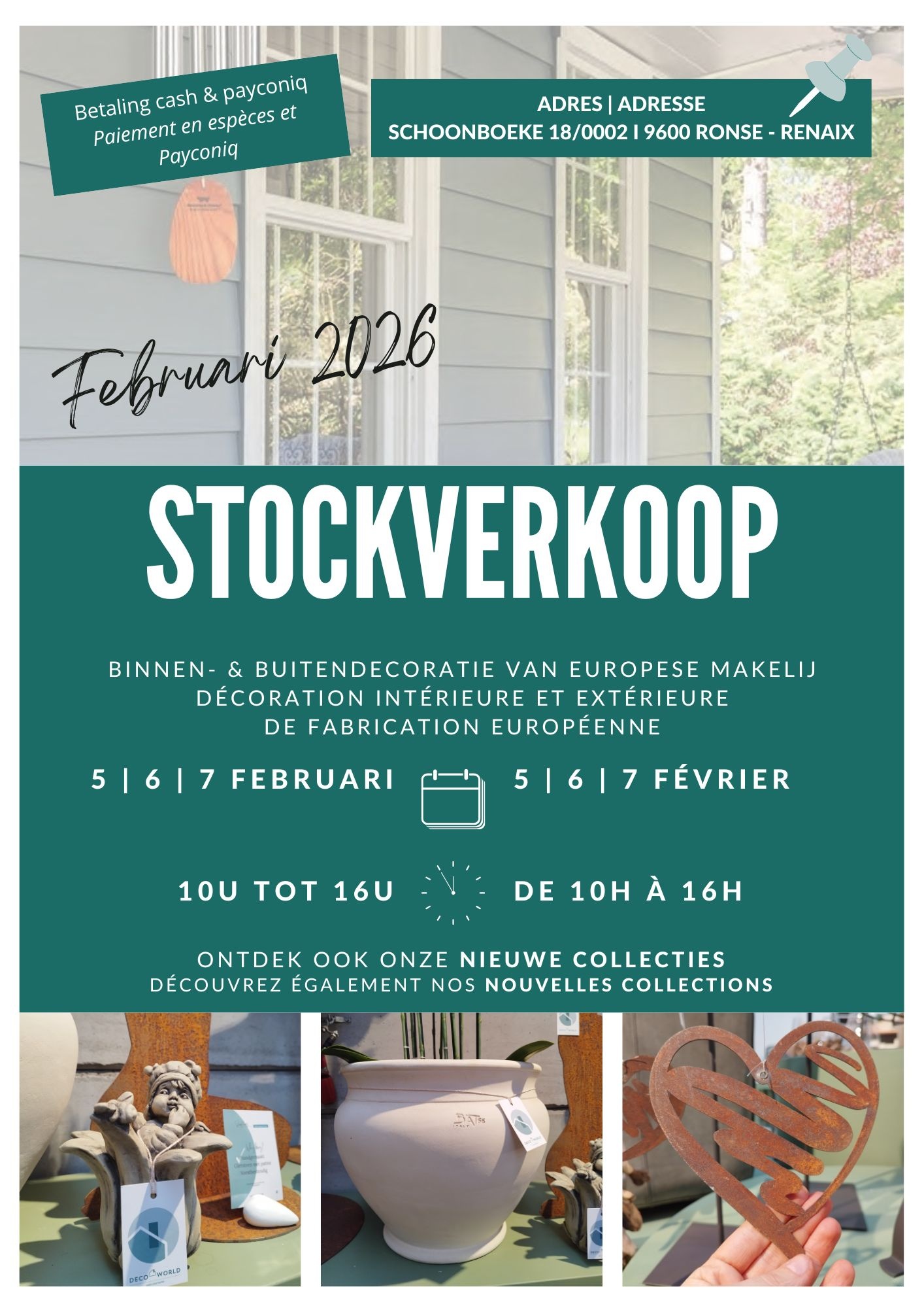 We organiseren een 2e STOCKVERKOOP voor onze binnen- en buitendecoratie aan groothandelsprijzen.