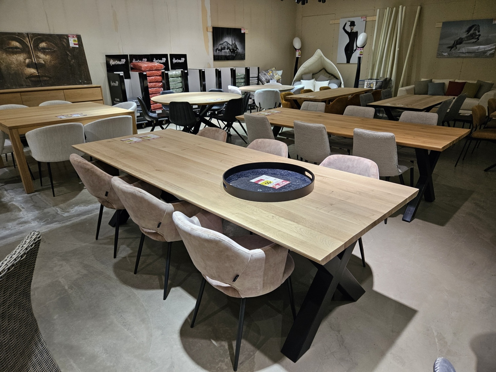 We bieden een ruim assortiment aan, waaronder interieurtafels, stoelen, dressoirkasten, vitrines en tv-meubelen.