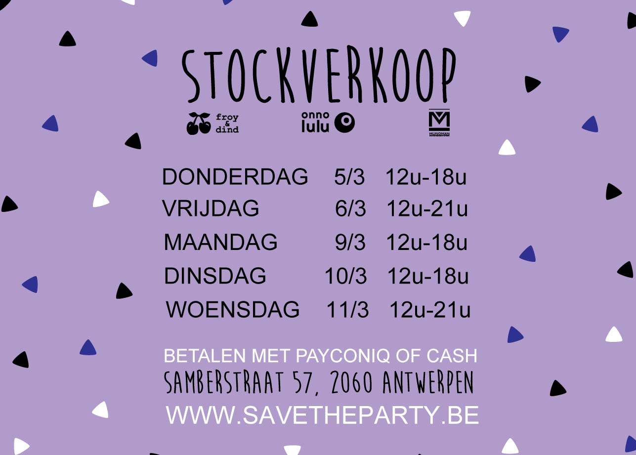 Stockverkoop van de merken froy & dind, Onnolulu (kleding voor baby's en kinderen), Munoman (herenmode), Oy-di (kleding voor dames), we say no! (kleding voor baby's en kinderen)