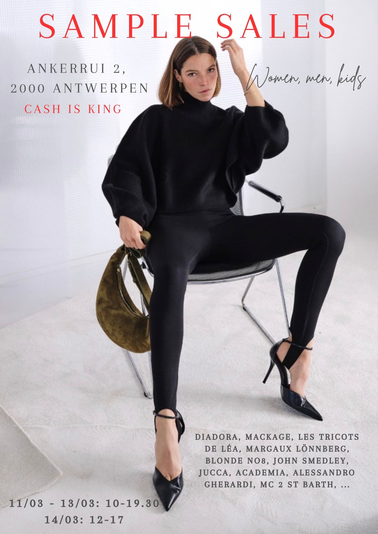 Sample sales van merkkleding en -schoenen van merken zoals: Diadora Heritage, Diadora, Margaux Lönnberg, Mackage, Les Tricots de Lea, Jucca, Academia, MC2 Saint Barth, John Smedley, Alessandro Gherardi, Toral, Nubikk & so many more