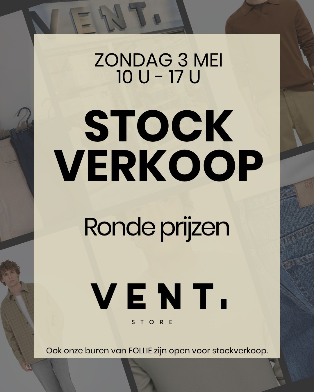 Stockverkoop georganiseerd door herenmodezaak VENT. Je shopt hier kleding voor heren aan ronde prijzen.