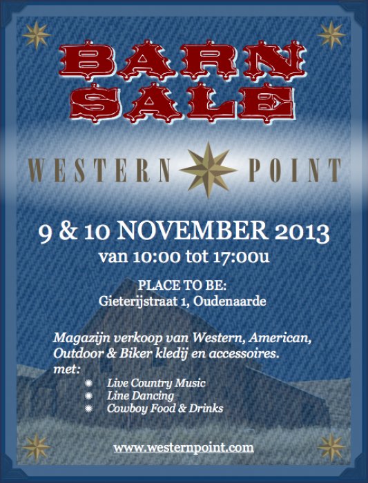 Magazijn verkoop van Western, American, Outdoor & Biker kledij en accessoires met: - Live Country Music