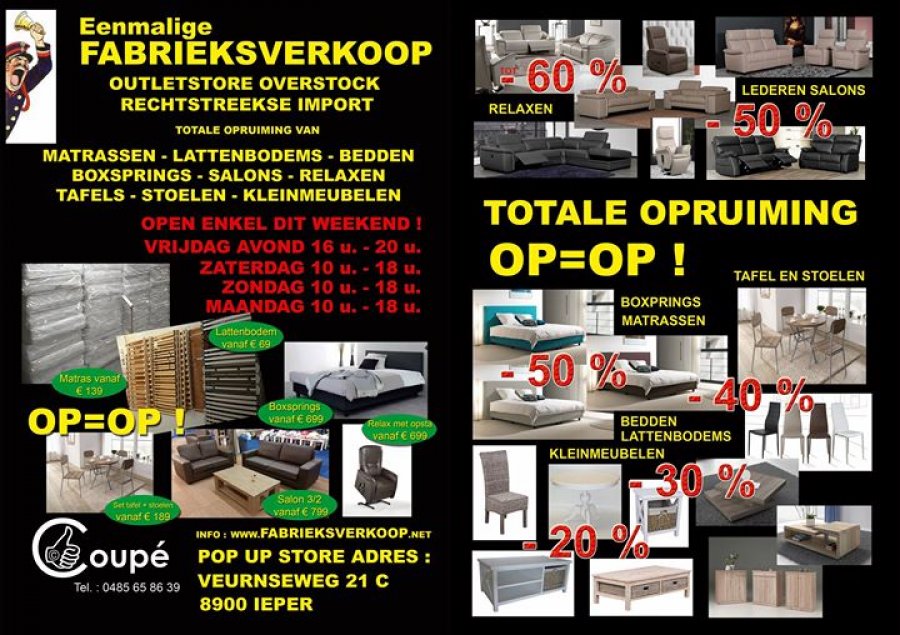 Verkoop kwaliteitsvolle matrassen - lattenbodems - bedden - boxsprings - salons - relaxen - tafels - stoelen - kleinmeubelen