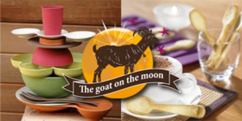 The Goat On The Moon gooit het over een andere boeg en verkoopt daarom de volledige stock. De volgende zaken worden aan flinke kortingen van de hand gedaan: originele bakvormen, kleurrijke en ecologische borden, kommen en aperitiefschaaltjes, kleurrijke weegschaaltjes, retrobroodtrommels en -weegschalen, ... Kortingen tot -50%, zolang de voorraad strekt!