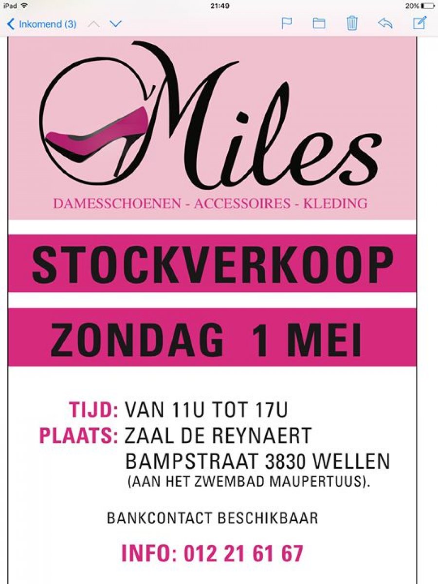 Zomer stockverkoop van kleding schoenen en accecoires !!! Bancontact aanwezig !!!