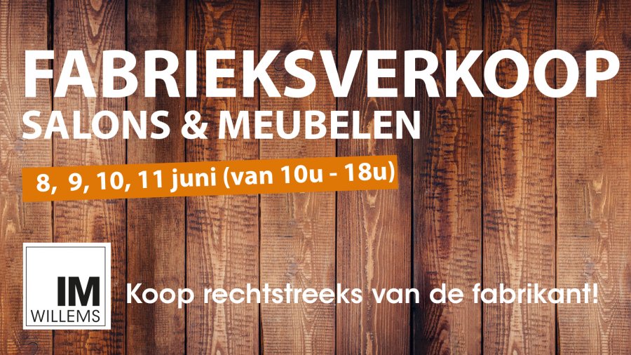 Op zoek naar een kwalitatieve salon of meubel aan een zacht prijsje? Sla dan nu jouw slag tijdens onze fabrieksverkoop op 8, 9, 10 en 11 juni 2016!