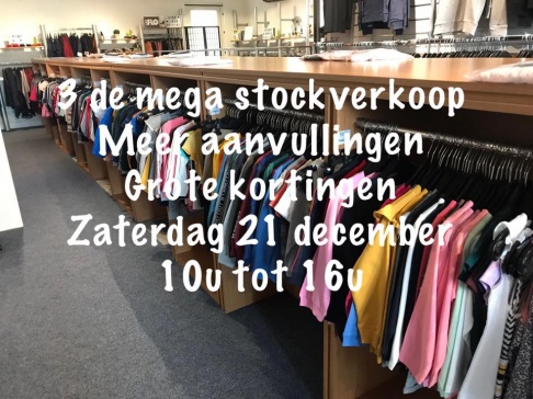 Liedekerke21 augustus 2020 --- 22 augustus 2020Stockverkoop van kleding voor dames en jeugd. Lente en zomercollecties van vorig seizoen en herfst en wintercollecties van vorig EN heidig seizoen. De maten gaan van XS tot XXXL. Je vindt hier ook accessoires