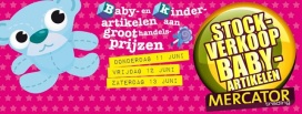 Stockverkoop georganiseerd door Mercator Trading van baby- en kinder artikelen aan groothandelsprijzen